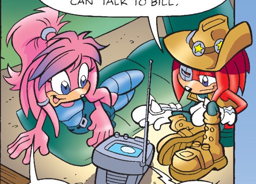Knuckles and Julie-Su contact Lara-Su, from Sonic Universe #5.