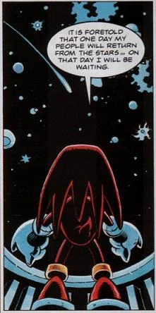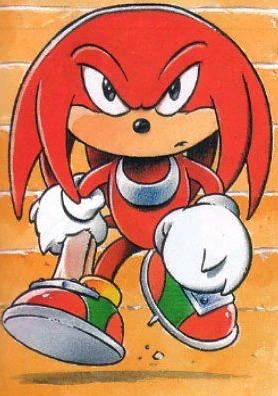 Knuckles the Echidna is a character that appears in the Sonic the Comic series published by Fleetway Editions. He is a red anthropomorphic echidna, and the last of his kind (at least initially). Completely alone, he guards the Floating Island, as well as the Chaos Emeralds and the Master Emerald, a duty that he takes very seriously.