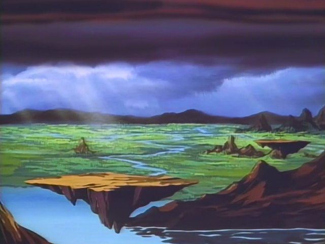 The Land of Darkness is a dark region on Planet Freedom. Dark gray clouds and floating continents cover most of the sky, preventing most of the sunlight from reaching the area. Despite its rather creepy and gloomy appearance, the region is verdant and clean, though it is a bit rugged with ridges and mountains and is littered with floating islands, lakes and deadly booby-traps and killer robots designed by Dr. Robotnik. Many ruins can also be seen in the Land of Darkness, in addition to real-world modern cities and Robotnik's home city, Robotropolis.