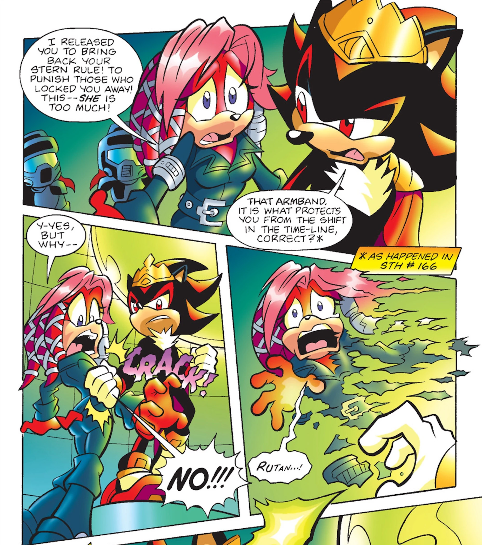 Rutan revealed that he had overheard Knuckles and Rotor talking about the collapse of the timeline. To his surprise, Lien-Da believed him and let him go without punishment.