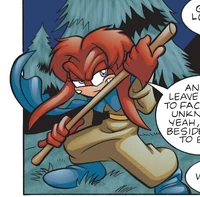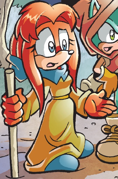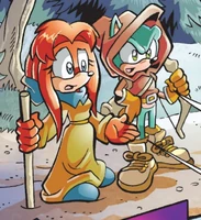 Mari-An first appeared when the tribe arrived in Mercia. To her shock, Mari-An discovered that her brothers, Zax and Raynor, had disappeared. Accompanying Knuckles the Echidna, she set out to find them. The two later split up, and upon their reunion, Knuckles was accompanied by Rob O' the Hedge. Rob and Mari-An's similar personalities led them to fight atop a log over a nearby river. Mari-An defeated Rob, and the two fell in love.[3] Meeting up with Sonic and Tails, the group worked together to save the tribe from the High Sheriff's enslavement. Upon their successful escape from the clutches of the High Sheriff, Mari-An accompanied Knuckles and Rob as the two guided the Lost Tribe of Albion.[4]