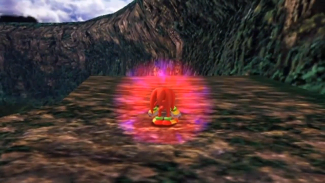 The Maximum Heating Knuckles Attack first appeared in Sonic Adventure and later its remake Sonic Adventure DX: Director's Cut . To perform the Maximum Heat Knuckles Attack, Knuckles must have obtained the Fighting Gloves . To use it in gameplay, the player must first hold down the Action button ( / ) to charge the move. Knuckles will then store up power (which is signified by small purple orbs floating around him) until he is surrounded by a pulsing red and purple aura. For as long as the action button is held, Knuckles will maintain the charge, although his speed dramatically decreases as a result. If Knuckles tries to jump, falls off of a ledge while charging his power, gets hit by an enemy, or if the player releases the Action button in an empty area, the charge will be canceled.