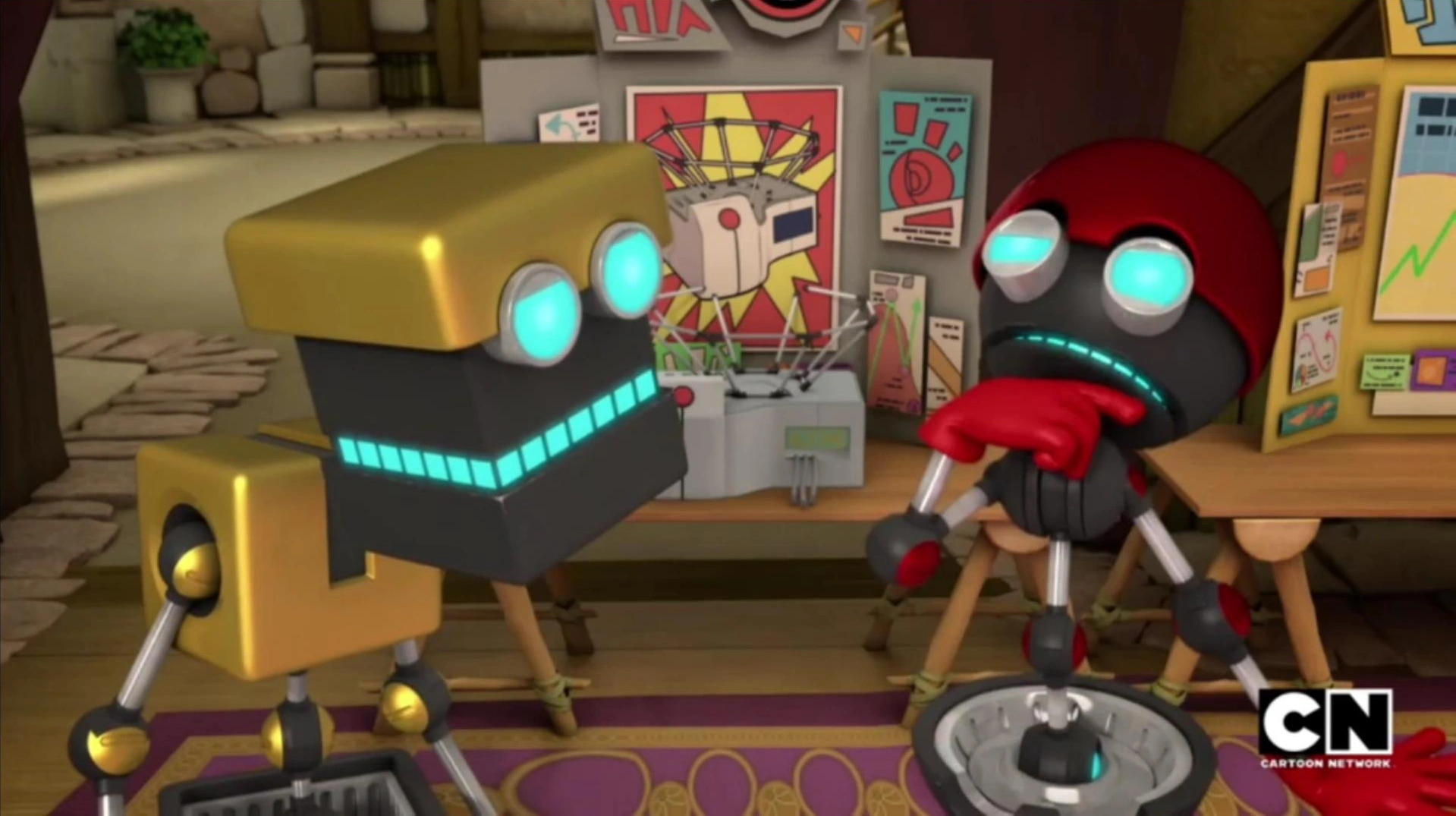 At Eggman's lair, Mombot has brought Sonic, Amy and Sticks over for dinner, where Mombot takes a shine to Sonic and his company. Whispering to Orbot and Cubot nearby, Eggman decides to defeat Sonic with some Mantis Bots to make Mombot respect him as a supervillain. However, Mombot notices the ambush (thanks to the eyes in the back of her head) and scolds Eggman for ruining her dinner. Eggman demands that Mombot respects him as her creator. Instead, she grounds Eggman and sends him up to him room, embarrassing him in front of Sonic, Amy and Sticks. Back in the Village Center, Beth is still being ignored by Tails and Knuckles, who are occupied with their game. It is then that Sticks arrives and warns Beth about how the government is using headphones for music to control people, among other things, catching Beth's interest. Back with Tails and Knuckles, the two are enjoying their game until they notice that Beth is leaving with Sticks.