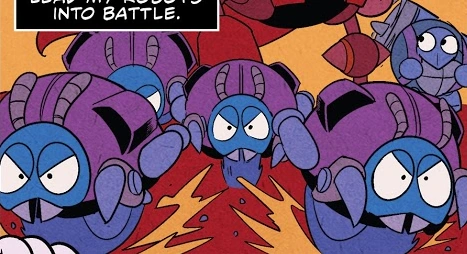 Motobugs wandering aimlessly around after the disappearance of Eggman, from Sonic the Hedgehog #1.