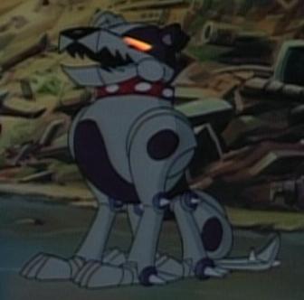 After being roboticized, Muttski became a mechanical dog with gray-purple armor and red eyes, which would turn while whenever his free will returned to dominance. As a Worker-Bot, Muttski also possesses several sharp teeth.