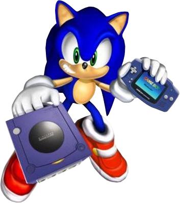 Sonic the Hedgehog with a Nintendo GameCube and Game Boy Advance.