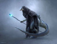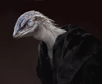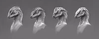 Rava is a tall, muscular, humanoid lizard with a large tail, a long tongue, legs which bend backwards, and pale green, scaly skin with some pale light green scales on parts of their body. For attire, they wear a dark khaki shirt with baggy sleeves that go down to their elbows, a light khaki shoulder bag, and a dark brown, hooded cape.[1]