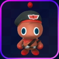 Resistance Chao have maroon pudding-like bodies with round, waterdrop-like heads. They also have dark blue eyes, no noses or mouths, round torsos that are smaller than their heads, smooth feet with no legs, and arms with no visible hands. In addition, neither their arms nor feet have digits. However, they have red tips on their arms and feet. They also have a floating red dot above their heads, short and round tails, and a small set of wings on their backs. For attire, they wear a black beret with a red brim and the resistance emblem on it, a brown sash/belt with grey metal buckles, a red bandana around their neck, and a black armband with red edges on their left arm.