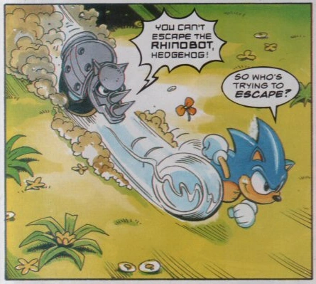 In the Sonic the Comic series and its spin-offs published by Fleetway Editions, the RhinoBots are Badniks created by Dr. Ivo Robotnik. In this media, they are covered in grey armour and are capable of speech. During an attack on the Emerald Hill Zone, a RhinoBot gave a decent chase to Sonic before getting destroyed.