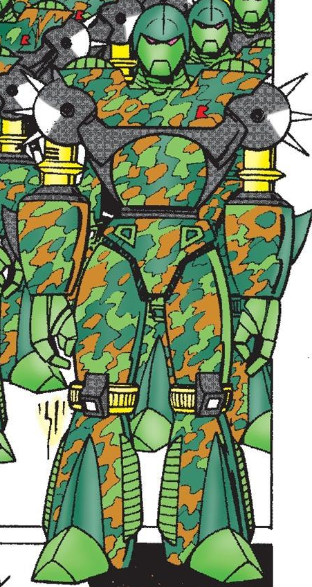 The Egg Pawn were the replacements for the SWATbots. The Egg Pawns were the ground forces with modular components and A.I. like SWATbots. Egg Flappers were the aerial variant, and Egg Hammers were giant melee version. They were all wiped out by the fourth Enerjak.[1]