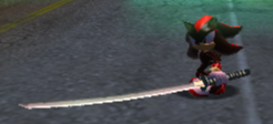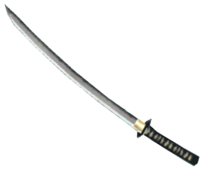 The Samurai Blade resembles a katana , specifically an ōdachi due to its size. Its blade is about two meters long and colored silver, with a golden collar and rayskin grip and a black guard and wrap.