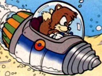 In the Sonic the Hedgehog comic series and its spin-offs published by Archie Comics, the Sea Fox was built by Rotor Walrus. He took out the oil in it and gave it to Tails so he could play in it. As he grew as a member of the Freedom Fighters though, the Sea Fox would become Tails' official marine vehicle. It was eventually destroyed by Octobot.