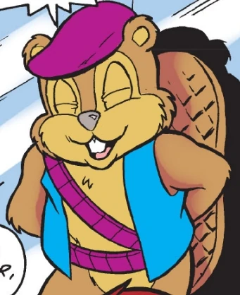 Smiley is a brown-furred and buck-toothed mobian beaver. He wears a purple (sometimes green) beret, purple utility belt, blue vest and purple boots.