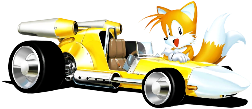- If the player is using Tails, the ending cutscene will show him getting out of his car at the finish line. Happy that he has won, he jumps and gives a thumbs-up to the screen as Sonic, Amy and Dr. Robotnik watch.