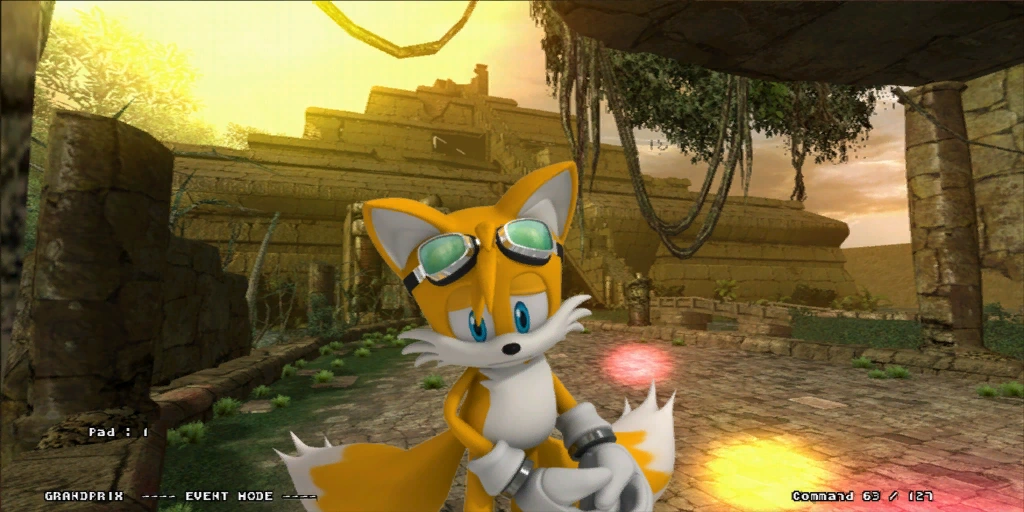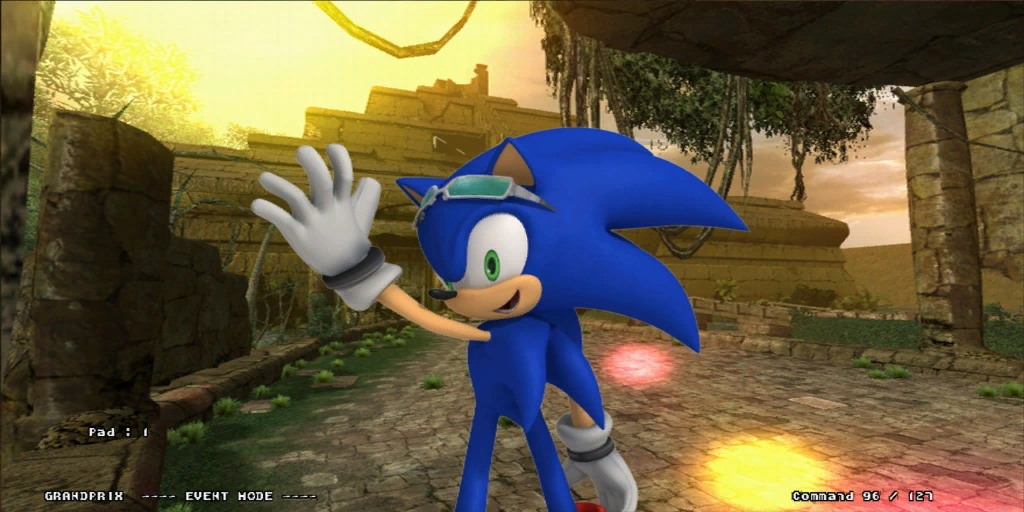 Found in the game's files for the credits and cutscenes are several placeholder images. All of them are filed under "Multivision_dummyscreen". There are 37 in total. Each one has a debug font on the bottom corners of the image. Omochao also appears to be different compared to the final game.