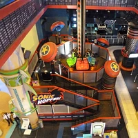 Sonic Hopper was a free-fall ride with a nine-meter (thirty-foot) drop. Unlike most free-fall rides, the track is cork-screwed so that riders spin as they move up and down. It was located at the now-defunct Sega Republic at the Dubai Mall.