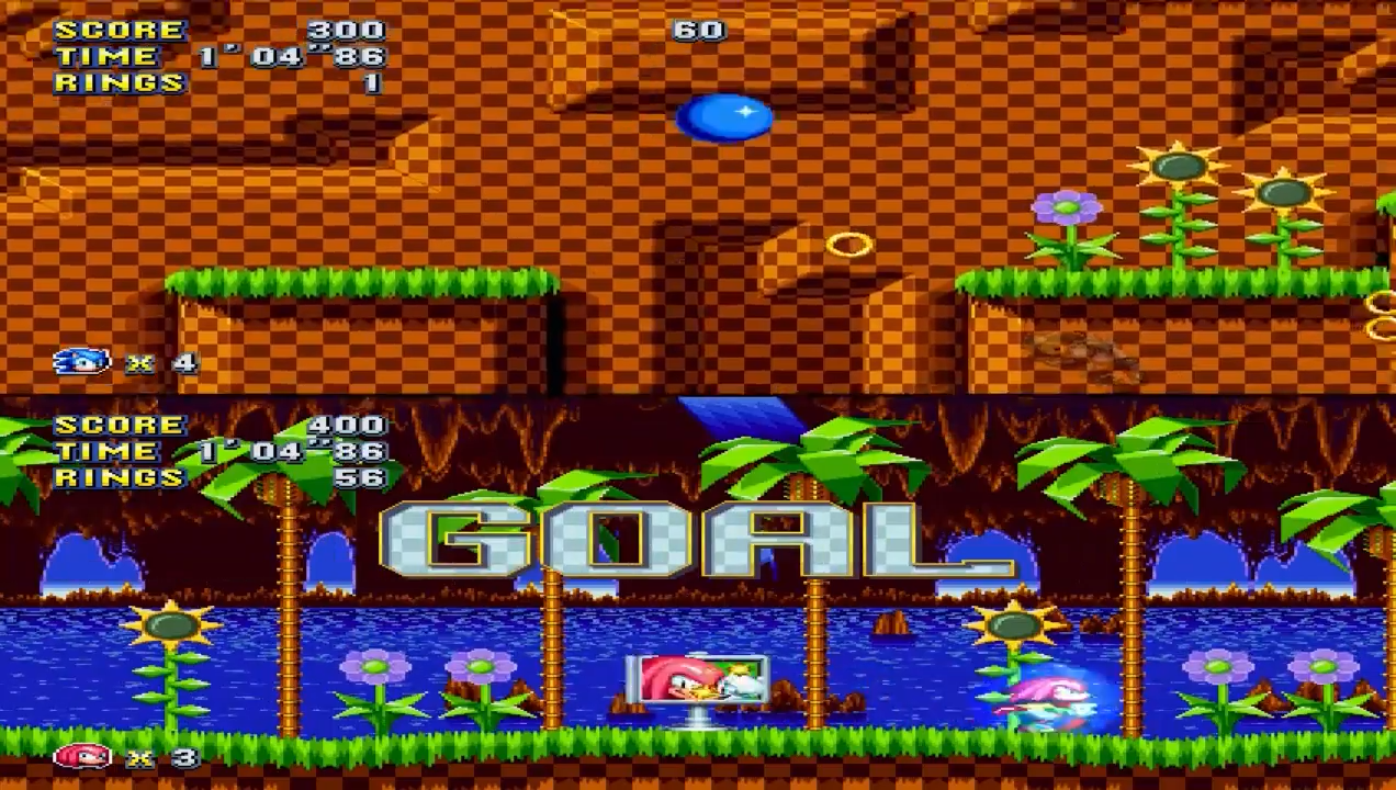 Emulating the style of the original Sonic Sega Mega Drive games, Sonic Mania is a 2D sprite-based side-scrolling platform game with Sonic the Hedgehog, Miles "Tails" Prower and Knuckles the Echidna as playable characters. The game uses an autosave feature that saves the player's progress at certain points.