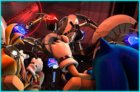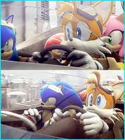In this cutscene, Sonic steps up to Jet to fight the final boss. This is the first stage of concept on how the cutscene is made. Various concepts for the HD Post Credit Scene. Here Jet and Sonic do one more race but the result was never known, even in Sonic Free Riders. |
