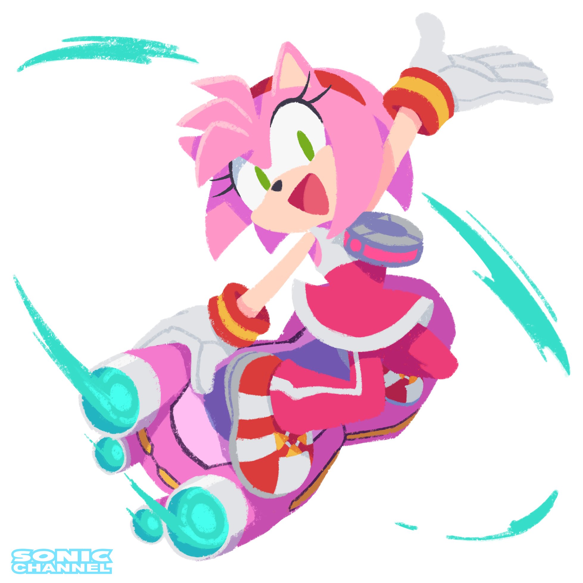 During the "Pixel Hunt" event, Amy was given a trick animation that references artwork created by Sonic channel for Sonic Riders: Zero Gravity's 14th anniversary.