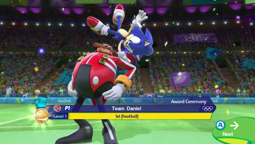 - ↑ SEGA (23 June 2016). Mario & Sonic at the Rio 2016 Olympic Games Wii U. Nintendo. Area/Level: Collectibles (Flags). "A red echidna that boasts some serious muscle, Knuckles is what one might call "best frenemies" with Sonic."