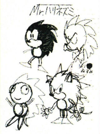 In April 1990, Sega requested a game capable of selling more than 1,000,000 copies; a character who could compete against Nintendo's Super Mario, and a character to replace Alex Kidd as the company's mascot. Several character designs were submitted by its AM8 research and development department. These included an armadillo (who was later developed into Mighty the Armadillo), a dog, a short mustached man in pajamas (who was later used as the basis of the design of the main antagonist Dr. Eggman) and a rabbit (who would use its extendable ears to collect objects, an idea that was later used for a separate Sega character named Ristar).[11] Eventually, the mascot they selected was Naoto Ohshima's submission, a spiky teal hedgehog codenamed "Mr. Hedgehog" (Mr. ハリネズミ Mr. Harinezumi?), later renamed Sonic.[12][13] Initial ideas for names for Sonic included "Raisupi" and "LS", and truncation and plays on the word "light speed".[14] However, due to a mistranslation of Ohshima's notes by English-speaking fans, it was believed that Sonic's original development name was "Mr. Needlemouse" until it was corrected by Yuji Naka on 24 January 2021.[13]
