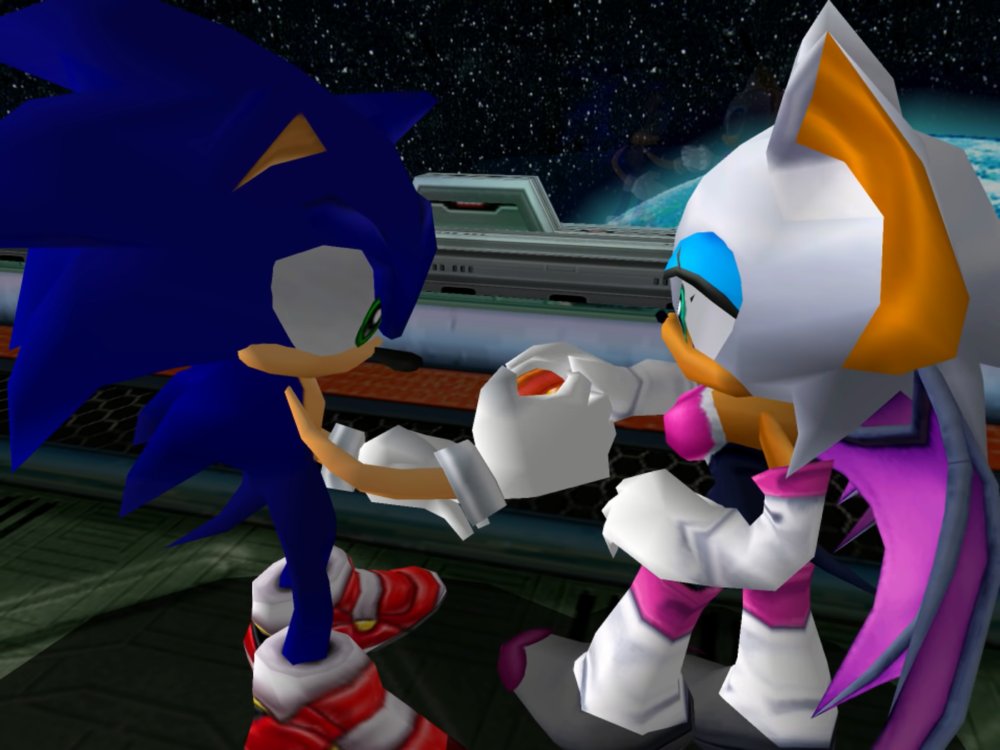 - ↑ Sonic Team, Sonic Team USA (3 May 2002). Sonic Adventure 2: Battle. Nintendo GameCube. Sega. Area/Level: Ending sequence. "Rouge: Do you really think... that the professor created Shadow to carry out the revenge on all those who live there, on earth? / Sonic: He was what he was. A brave and heroic hedgehog, who gave his life to save his planet. Shadow the Hedgehog..."