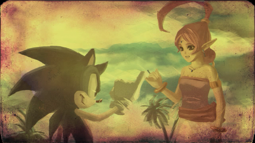 In keeping with his footloose lifestyle, Sonic never dwells on the past or allows his painful experiences to weigh him down. Instead, he lives in the present and always looks forward to his next adventure, holding no regrets for what has transpired. It is only in the moments of greatest loss that his macho and carefree appearance falls away, like the apparent death of Elise.[37] Similarly, Sonic always does what he thinks is right and never second-guesses what he does, remaining steadfast to the end.[29] Together, these qualities give Sonic an incredibly strong character and will; no matter the situation, he never doubts himself or gives up, never once submitting to the darkness in his heart.