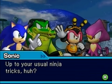 - ↑ Sonic Team (4 November 2011). Sonic Generations. PlayStation 3. Sega. Cutscene: Rescuing Espio.