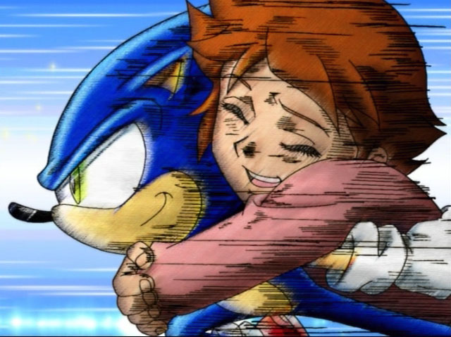 When Sonic and his friends were finally able to return home via a dimensional portal, Chris deactivated the portal to prevent Sonic from going home and the two ventured to a faraway place.[18][23] During this trip, Sonic saw Chris in situations where he needed help but surprisingly, Chris did not want it. Arriving at their location, Sonic expressed to Chris that he did not mind which world he chose to reside in. Chris finally came into terms with his own feelings and realized that Sonic had to go. Although Sonic understood that his friend would be lonely without him, he expressed hope that one day, they would see each other again.[23]