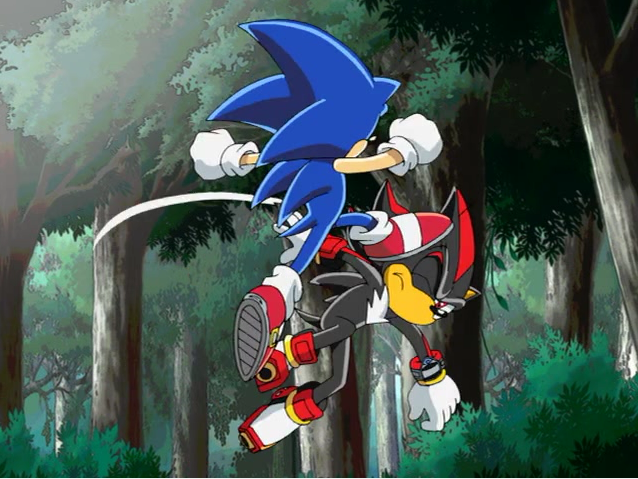 Sonic sees Shadow the Hedgehog as another rival to him, but unlike with Knuckles, their clashes are more volatile. Every time Sonic fights Shadow, he knows that he could not waste time joking with him or else he would be quickly defeated. Though they had their differences, both Sonic and Shadow would put them aside whenever they faced an enemy greater than they could handle alone.