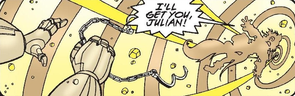 When Kodos attempted to take the Overlander Julian Kintobor under his wing as a future partner for his planned takeover, Julian betrayed Kodos and sent him into the Zone of Silence, as he already had plans to take over himself. Julian informed King Max that Kodos had died when he tried to use one of Naugus' devices which he did not fully understand. Julian replaced Kodos as Warlord and began planning his schemes.[8]