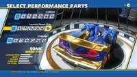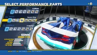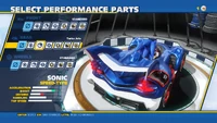 In this game however, the Speed Star's basic statistics grant it solid boost once more while retaining its solid top speed, but now with moderate acceleration and handling albeit with slightly below average defense (these base stats are also mirrored by the base version of Shadow's Dark Reaper in the same setting). However, its statistics, as well as its artistic design, can be modified by replacing its parts.