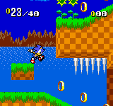 Most other spiky obstacles from the 16-bit version are seen in the 8-bit version. In Jungle Zone Act 2, there are also wooden spikes sticking out of fallen tree trunks. The Game Gear port also features "!" signs that warn the player about upcoming spike pits.