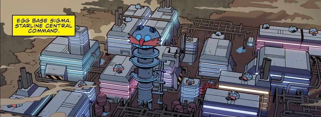 Starline Base Sigma,[1] formerly known as Egg Base Sigma,[2] is a location that appears in the Sonic the Hedgehog comic series and its spin-offs published by IDW Publishing. It was one of the Eggman Empire's industrial sites on Earth. However, it was eventually seized by Dr. Starline and turned into his command center. It was also home to Surge and Kit until sometime after Starline's death.