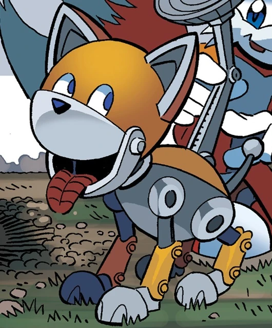 T-Pup (created 3237) is a character that appears in the Sonic the Hedgehog comic series and its spin-offs published by Archie Comics. It is a small, canine-like robot built by Miles "Tails" Prower at his workshop on Cocoa Island. Initially just a "pet project", T-Pup saw prolonged action while assisting his creator in their first encounter with the Battle Bird Armada, where his help was instrumental to driving them off. T-Pup was brought back to New Mobotropolis after this, and resumed the role of being a pet and useful companion to Tails whenever possible. Once Team Fighters was formed, T-Pup became part of their assists in the field, proving invaluable with his many utility functions.