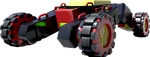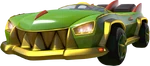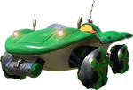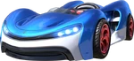 Vehicles also have customization options that adjust the performance and appearance of a playable character's vehicle.[20] These customizations are unlocked as the player progresses through the game.[10] Most customizations, however, can be obtained through Mod Pods which can be purchased for ten Credits each.[21] The player can obtain two broad types of customization parts: Mods and Bonus Boxes. Mods in particular can be divided into Performance Parts (which modify a vehicle's appearance and stats) and Car Cosmetic, the latter of which can be divided further into Paint Kits (which modify a vehicle's color scheme), Vinyls (which lets the player decorate the vehicles with decals) and Horns (which modify the vehicles' horn sounds).[22] Bonus Boxes, on the other hand, are one-time equipment that can be equipped before a race in order to grant the racer a power-up from the beginning of the race or a special ability. Meanwhile, Mods can be added to a race car in the Garage, a mode where players can personalize their race cars. Performance Parts are particularly important. Each character gets eighteen Performance Parts to choose from which are divided into three sets: six for the vehicle's front, six for the vehicle's rear, and six for the vehicle's wheels, giving a total of 270 Performance Parts in the game. In addition, half of the Performance Parts are classified as "Legendary", which add golden colorations to the vehicle. The stats the Performance Parts modify include: