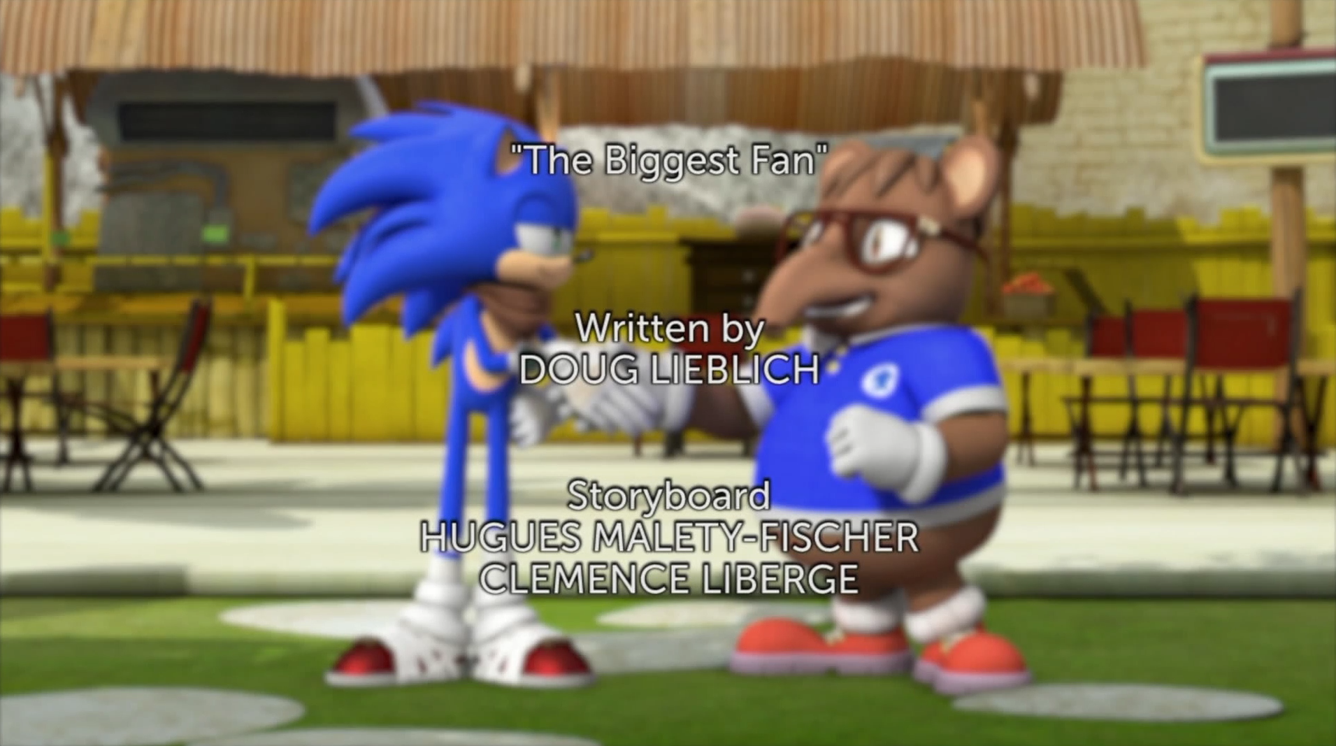 - ↑ Doug Lieblich on Twitter. Twitter (11 December 2016). Retrieved on 11 December 2016. "Alexander Soerensen: Did you guys do a lot of research on the Sonic fanbase for "The Biggest Fan"? / Bill Freiberger: the research was more towards fandom in general."