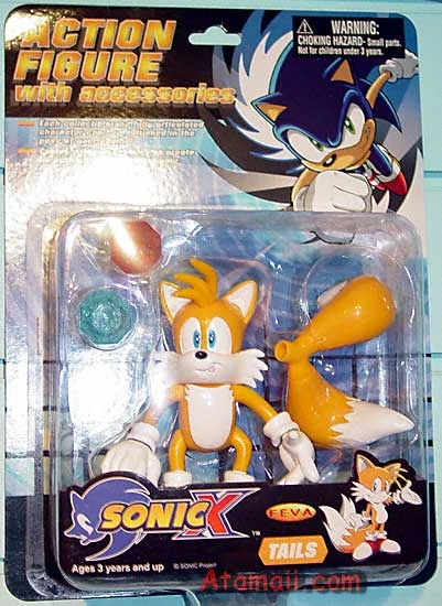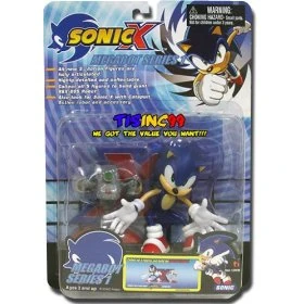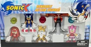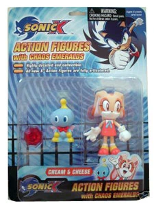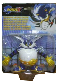 The 10-inch Sonic Adventure talking action figures were re-released in Sonic X packaging. The three figures no longer talked, but still had the buttons on their feet.