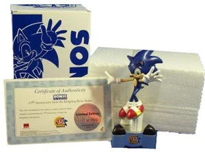 In 2006, Toy Island produced a statue to commemorate Sonic's 15th anniversary. The statue was 7 inches in height, made of resin and limited edition as only 2500 were made.[3] It came with a certificate of authenticity that included which number of 2500 it was too.
