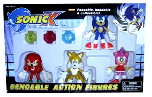 A set of 3-inch bendy figures were available individually of Sonic, Tails, Knuckles, Amy, Big and Dr. Robotnik. A four-pack was available which included Sonic, Tails, Knuckles and Amy. A second four-pack of Sonic, Dr. Robotnik, E-102 Gamma and Big the Cat was advertised, as well as an individual release of E-102 Gamma, but both were never released.