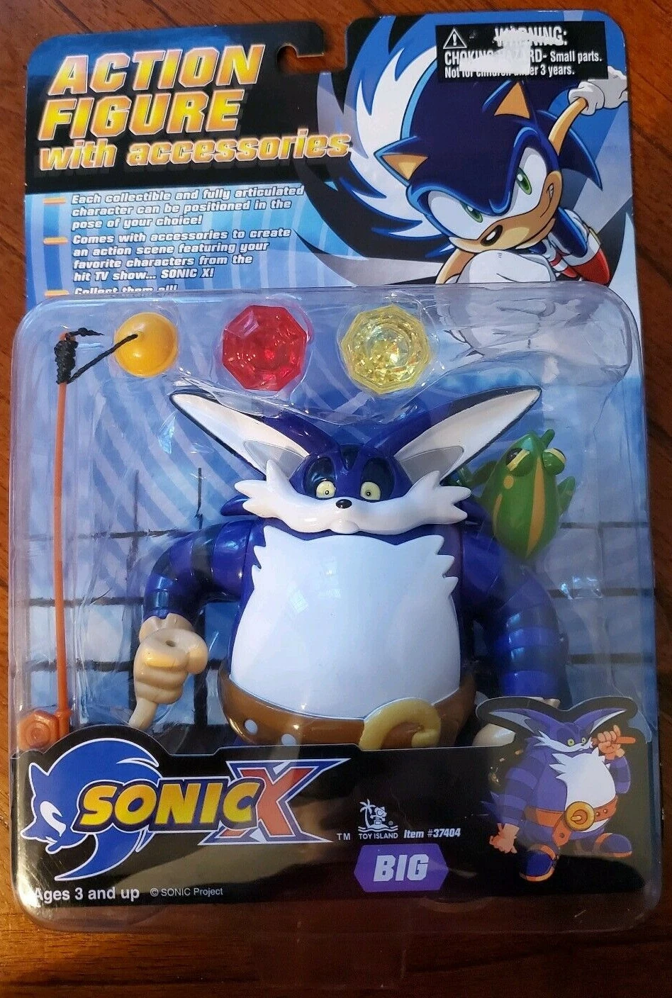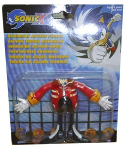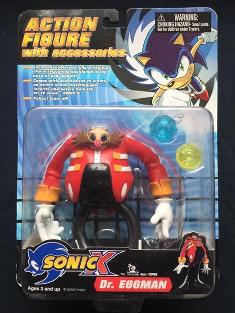 After Sonic X aired in the United States, Toy Island re-released their Sonic Adventure action figures in new Sonic X packaging. The sculpts were altered—Sonic and Knuckles' heads were fixed, the magnets in the shoes were removed and many of the accessories were discontinued—no more Kiki or Chao, however, most of Big the Cat's accessories remained. Dr. Robotnik was relabled to "Dr. Eggman". The figures were at some point released in Japan by Kid Galaxy, and later distributed by Feva in the United Kingdom, Grand Toys in Canada, and MacDue in Italy.