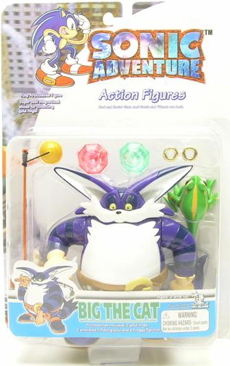 This basic 5-inch series of action figures is the main focus of the Toy Island line. The figures of Sonic, Tails and Knuckles were not received quite as well as the ReSaurus figures of them, due to Sonic and Knuckles having heads that were a little strange in shape. Tails' body was very large and chubby in comparison to the other characters, and his expression was considered by many consumers to be "goofy." This series did, however, release well-received sculpts of Big the Cat and Dr. Robotnik. These figures came with accessories such as Chaos Emeralds, real metal Rings and many of the figures came with miniature sidekicks, such as Tails, who came with a Chao, Dr. Robotnik had Kiki, and Big the Cat had Froggy and a fishing pole.
