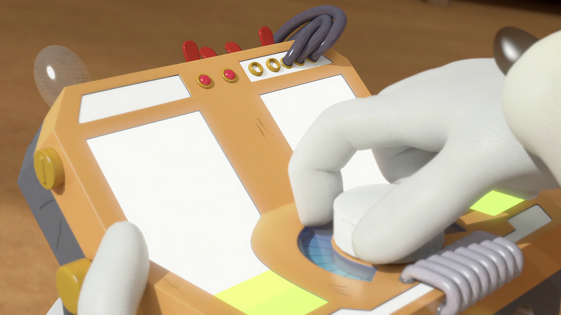 Sonic wearing the chest plate device.