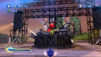 After ten hits, the note turns yellow and starts moving much faster. Ten more times and the note turns red, making it even harder to catch. As Vector pushes it back the twenty-ninth time, the note does not return to Sonic but instead runs up a road left to the area. At the end of the road there is a barrier, and Sonic must boost into the note before it touches the barrier. Sonic can also send the note back before it starts flying up the road.
