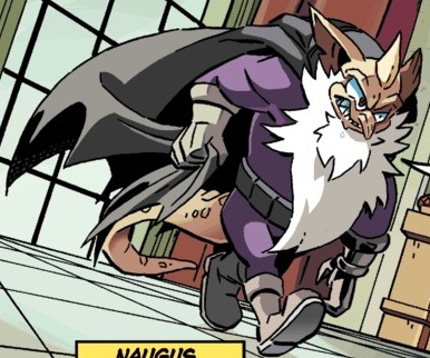 - Naugus is one of four Sonic the Hedgehog characters to have their names added to/changed since the Worlds Collide crossover. The other characters are Muttski - now Ben Muttski, Snively Robotnik - now Julian Snively and Maximillian Acorn - now Nigel Acorn.