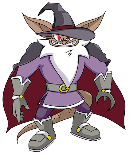 Naugus served as the Royal Wizard to King Nigel Acorn at the time when Princess Sally was a young child. However, his ambition led him to seek conquest of the Kingdom of Acorn, and he formed an alliance with renegade G.U.N. scientists Dr. Eggman and Dr. Julian Snively. The trio worked together in an effort to overthrow the kingdom by convincing the king that the United Federation intended to invade. Eggman's successes proved detrimental to his partner, as both Naugus and his former monarch were imprisoned in the Special Zone by the villainous doctor.[5][6] There, he found a Chaos Emerald. He was eventually freed by Sonic the Hedgehog during his trek to retrieve the Emeralds, disguising himself as the King to fool the young hedgehog while giving him the Emerald he found.[7]
