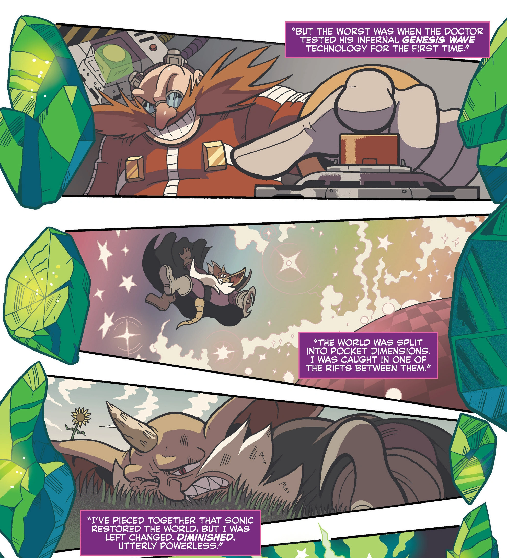 - ↑ Sonic Universe #84, "Eggman's Dozen Part Two: Power Meeting"