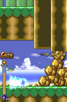 The layout of Whale Point is very simple and open so Sonic's movements can be fully explored. For the majority of the stage, the player must execute the techniques/movements that Tails tell them to, to make a Checkpoint appear. Only by touching these Checkpoints can the player progress with the stage; otherwise, they will be stuck inside a confined space.